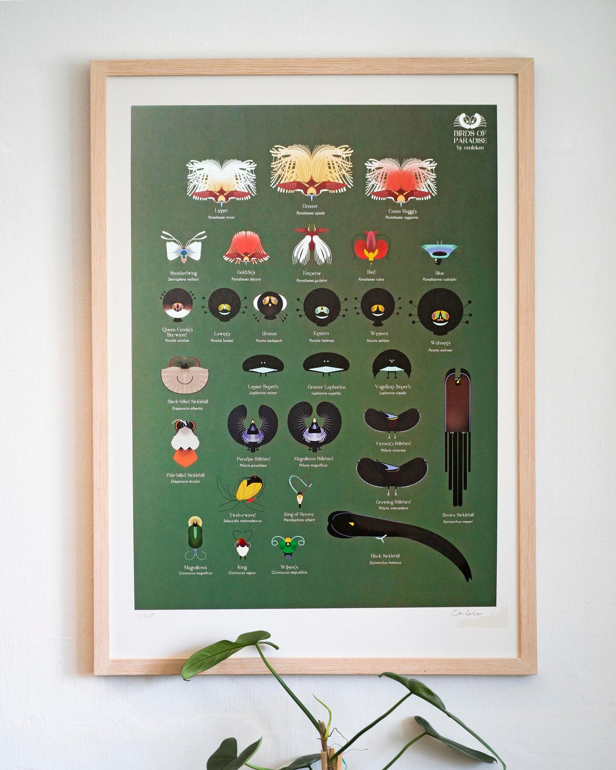 The art print demonstrates the female bird’s eye view during the male courtship dances. For example, the Parotia genus has the female perched above the male as the male dances below in a dancer manner. They are going for 100 dollars per piece, excluding delivery.