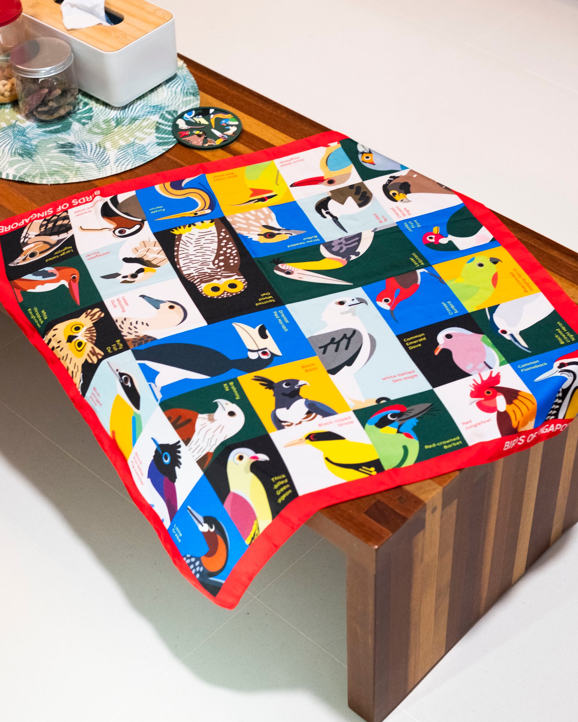 Birds of Singapore satin cloth